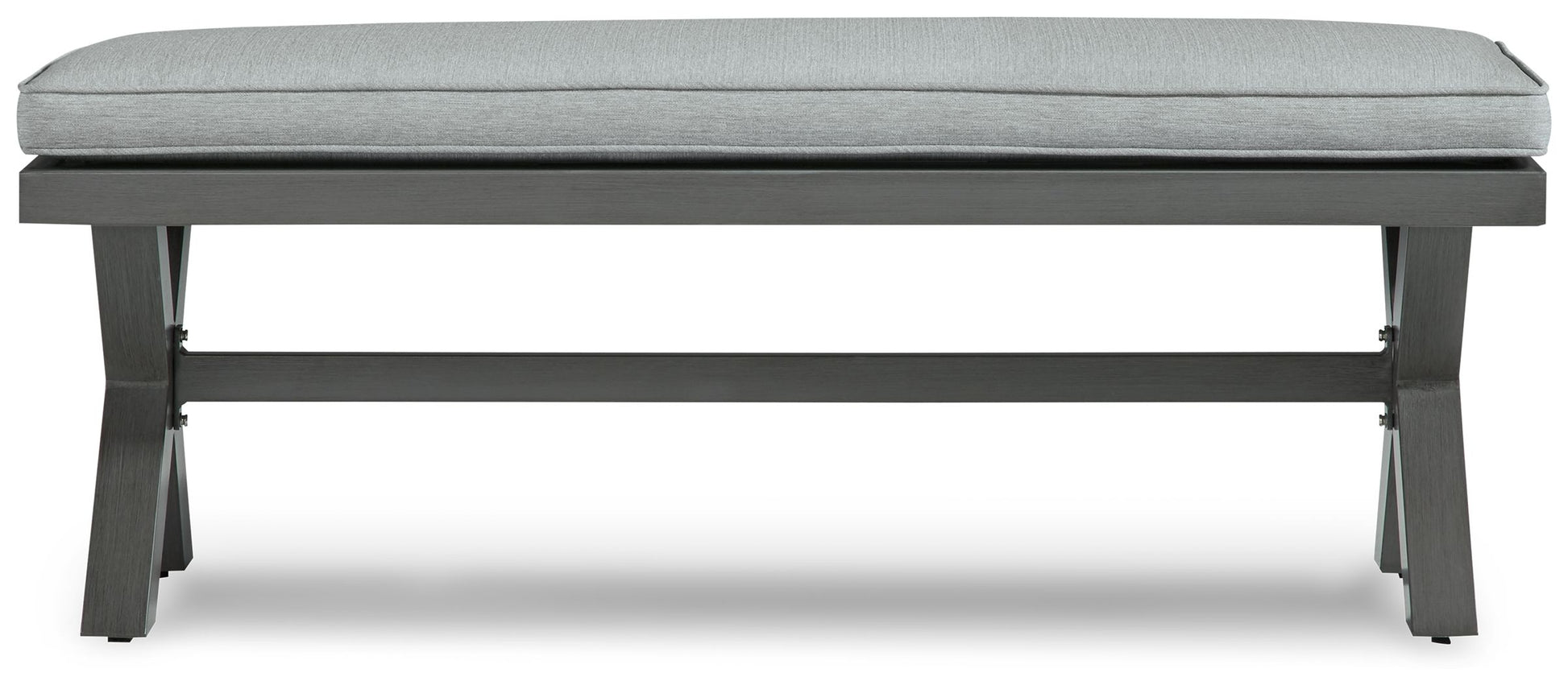 Add a distinguished touch of gray to your outdoor living space with this bench. It's made with an aluminum frame with a wood-look finish for a relaxed feel that provides seasons of enjoyment. Rest assured, the thick seat cushion is wrapped in Nuvella® high-performance fabric that’s fade-resistant, stain-resistant and a breeze to clean.